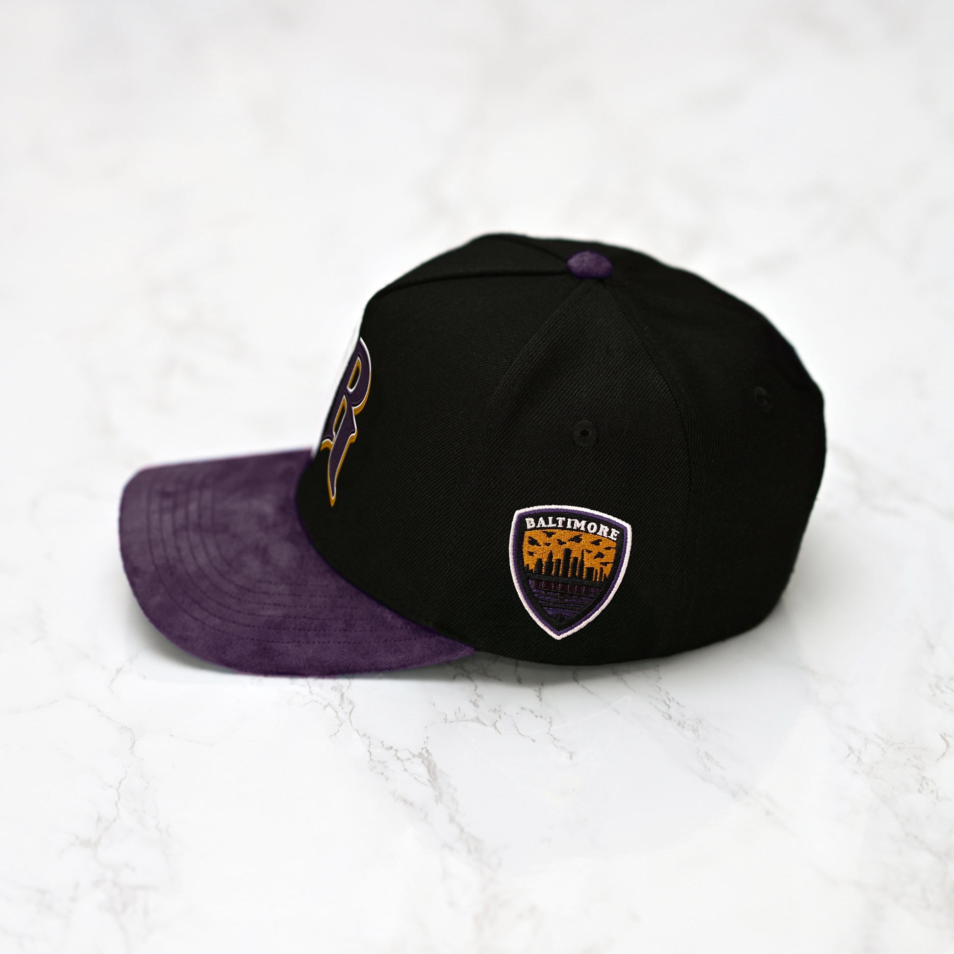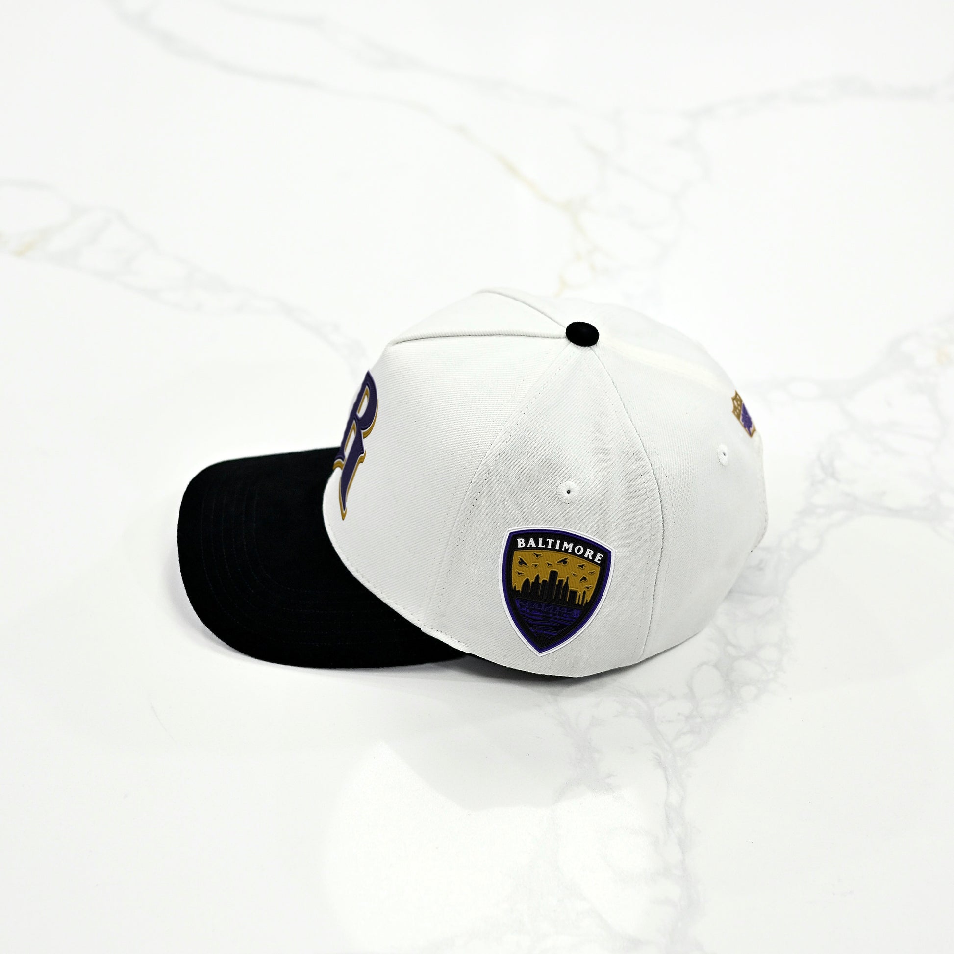 Side Patch Artwork: The iconic shield that depicts the Baltimore skyline under a flock of ravens.