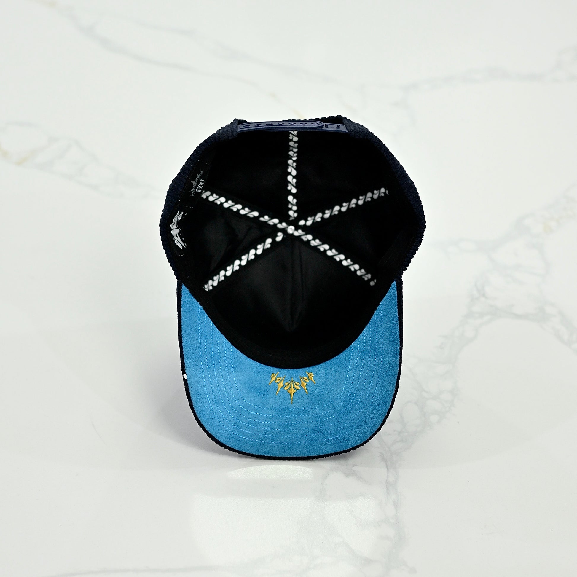 Colors: Midnight Blue Thick Corduroy // Powder Blue Suede UV