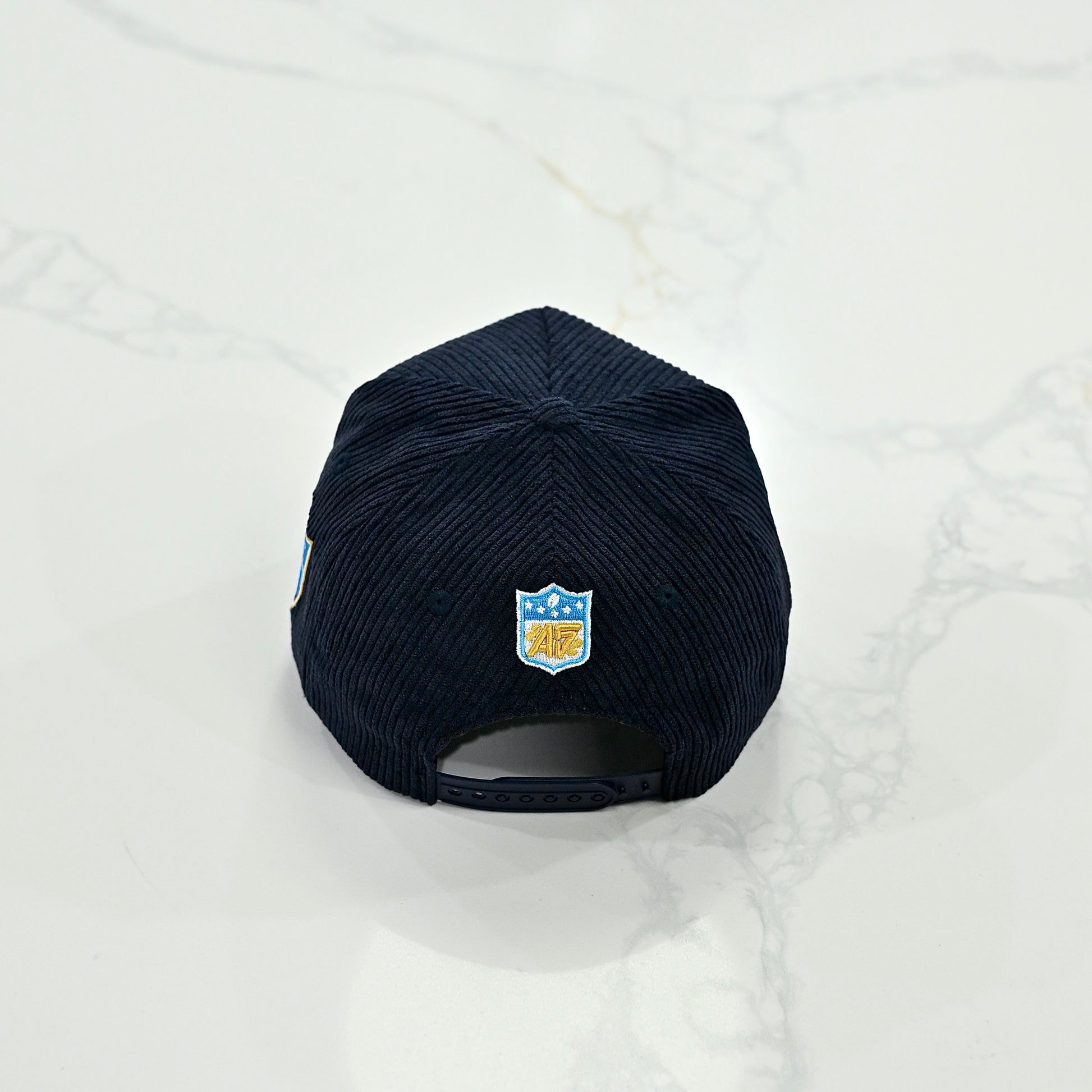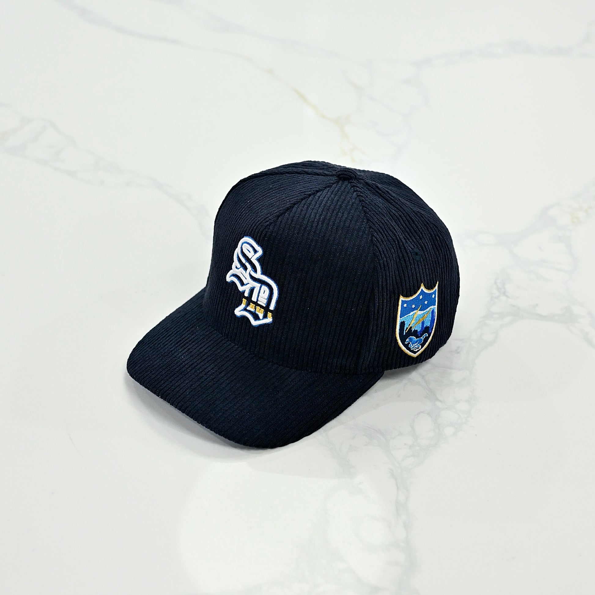 Front 3D Embroidery: "C" initial inspired by California newspaper fonts with an integrated bolt. Blank and yellow stripe inspired by Chargers modern word logo.