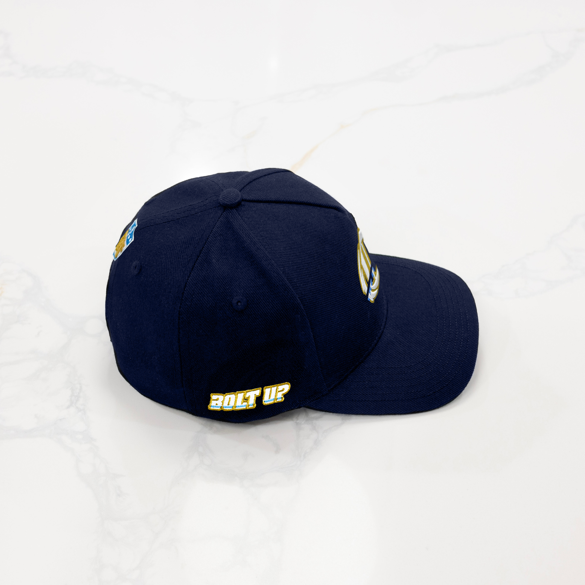 Underbrim Embroidery: "BOLT$” font inspired by the modern word logo.