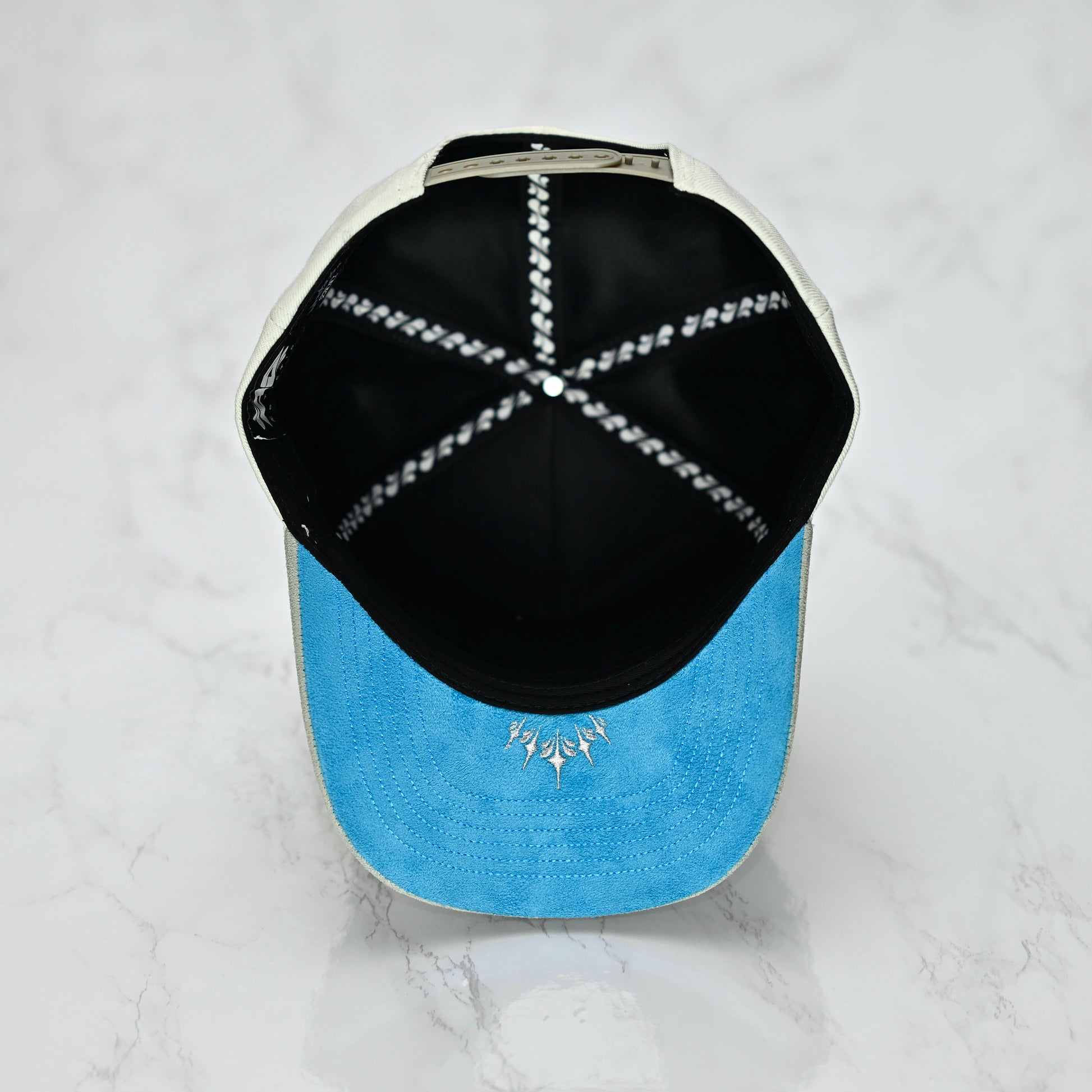 v2: White Acrylic Wool // Platinum Suede // Electric Blue Suede UV