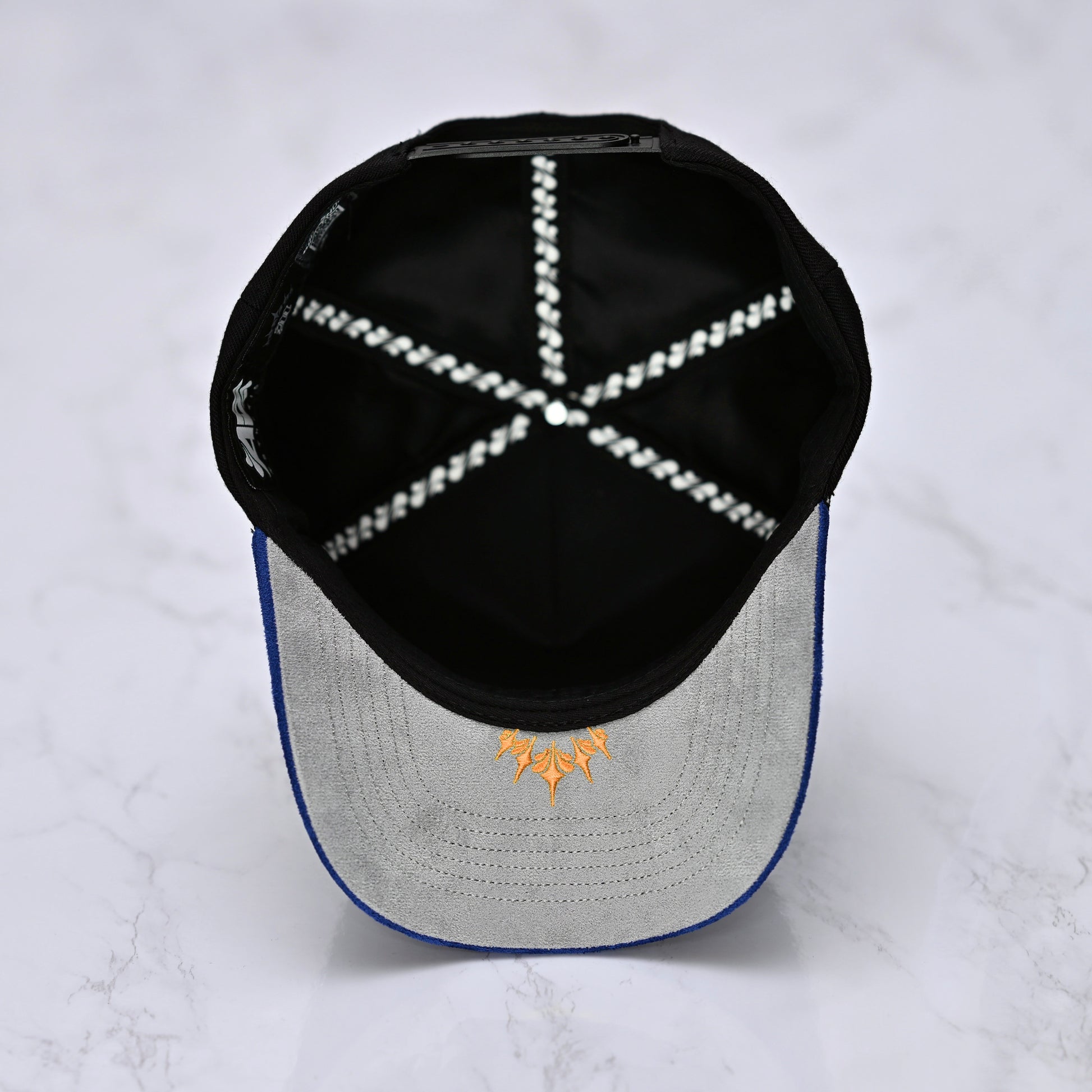 Black Acrylic Wool // Royal Blue Suede // Platinum UV with Metallic Silver accents