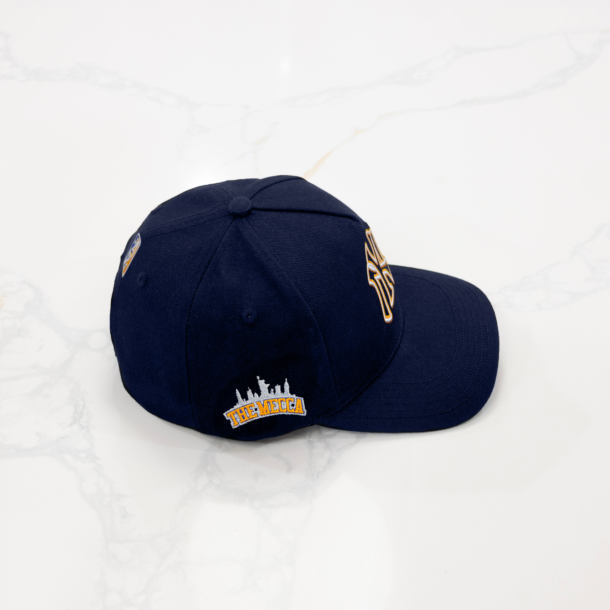 Opposite Side Patch: “THE MECCA" inspired by modern team fonts with the infamous new york skyline above.